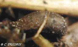 Pupe enterrée à la base d'une ombellifère